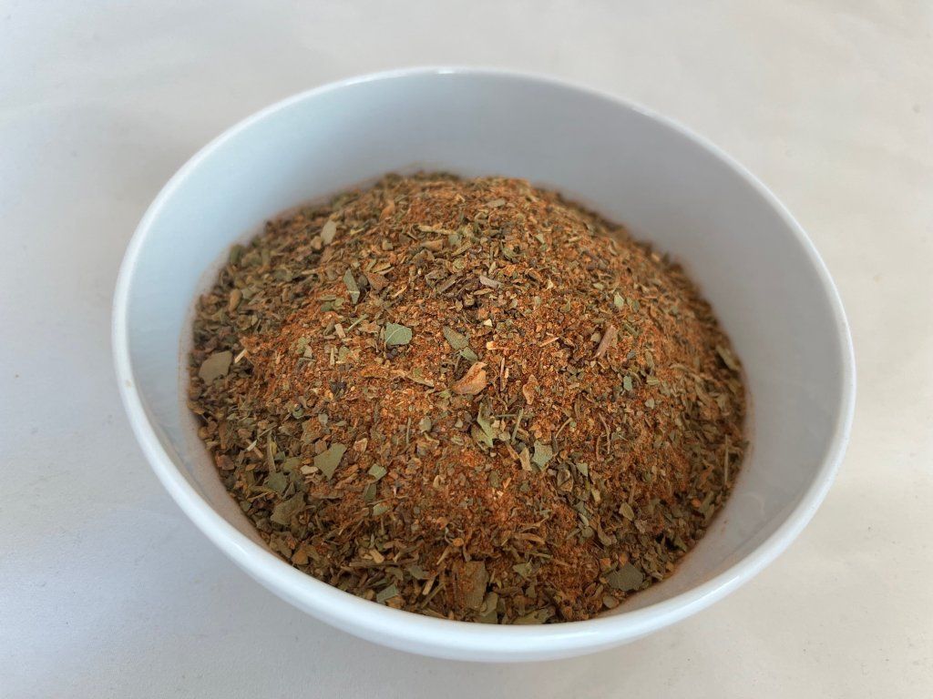 ZLOŽENIE: Paprika mletá sladká, bazalka, jedlá soľ s jódem max. 13 %, saturejka sušená celá, cesnak sušený mletý (obsahuje SO2), majorán sušená, paprika mletá pálivá, bobkový list drvený, koriander mletý,ZELER nať, senovka grécka mletá.