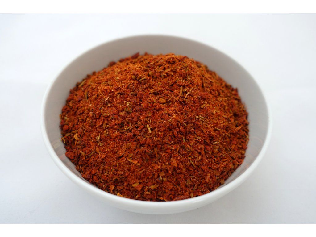 ZLOŽENIE: Soľ max. 30 %, paprikové floky červené, paprika sladká, glutamát sodný, rozmarín, oregano, HORČICA bílá, čierne korenie mleté, rasca mletá.