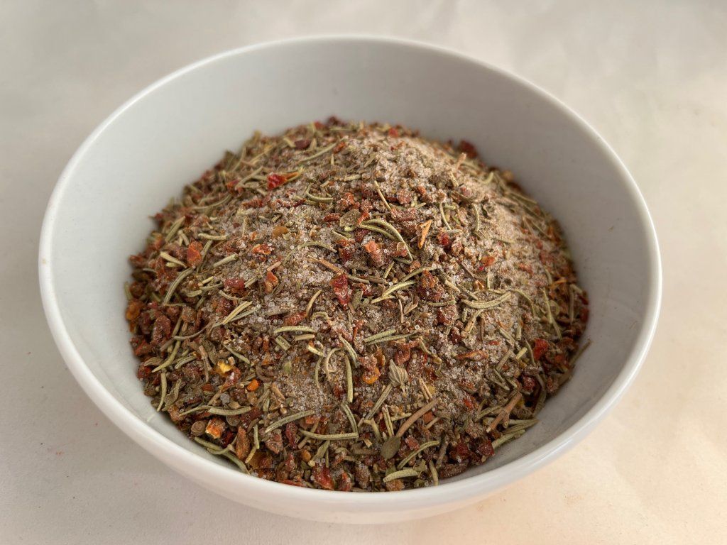 ZLOŽENIE: soľ jedlá s jódem max 40 %, rasca mletá, paprikové floky červené, rozmarín celý, maltodextin, cukor krystal, oregano