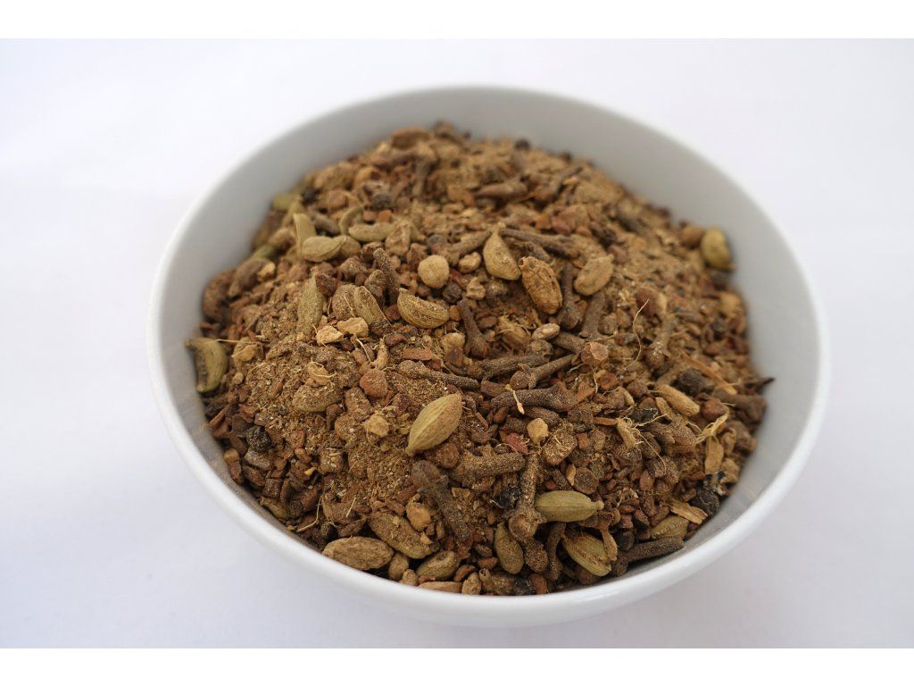 ZLOŽENIE: Škorica, kardamóm celý, kardamóm mletý, klinček celý, zázvor, klinček mletý, čierne korenie celé, zázvor mletý, čierne korenie mleté.