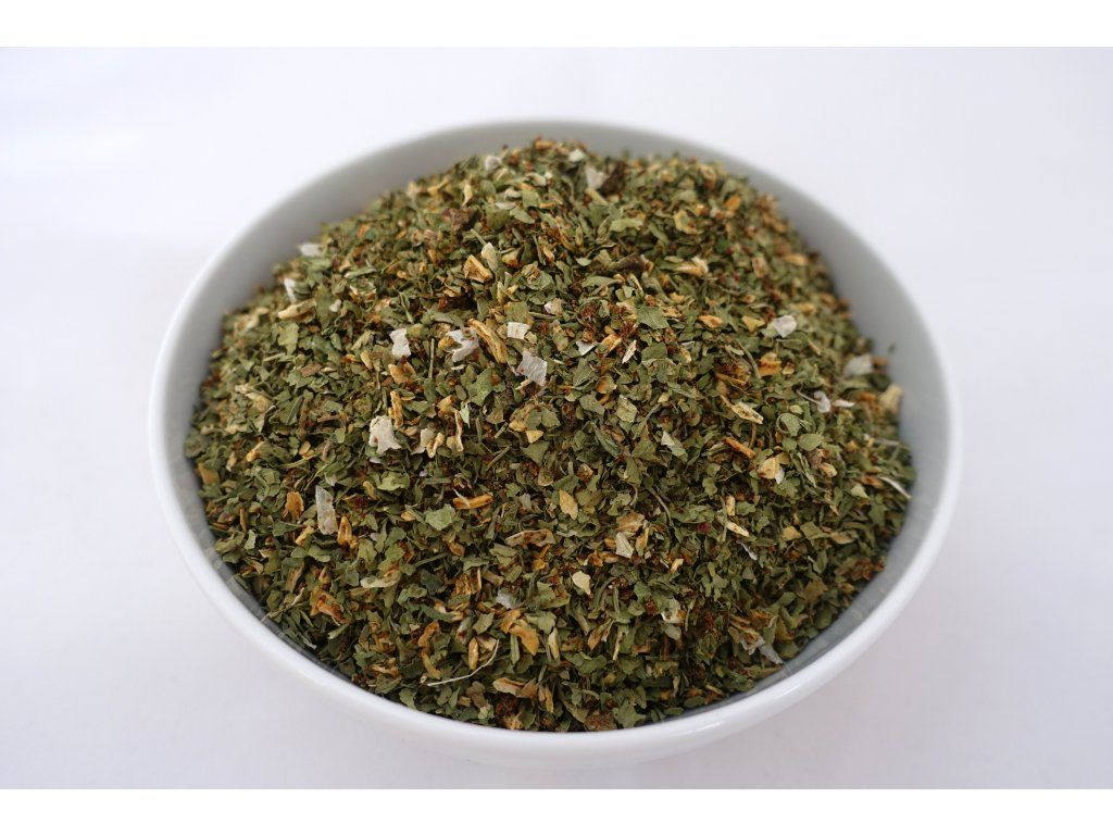 ZLOŽENIE: Petrželová nať, paprikový prášok červený, cibuľa, paprikové floky zelené.