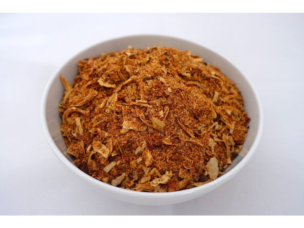 ZLOŽENIE: Soľ max. 35 %, kukuričná krupica, cibuľa, E621, paprika sladká, rasca, čierne korenie, paprikové floky červené, chilli semínka, petržlenová vňať.