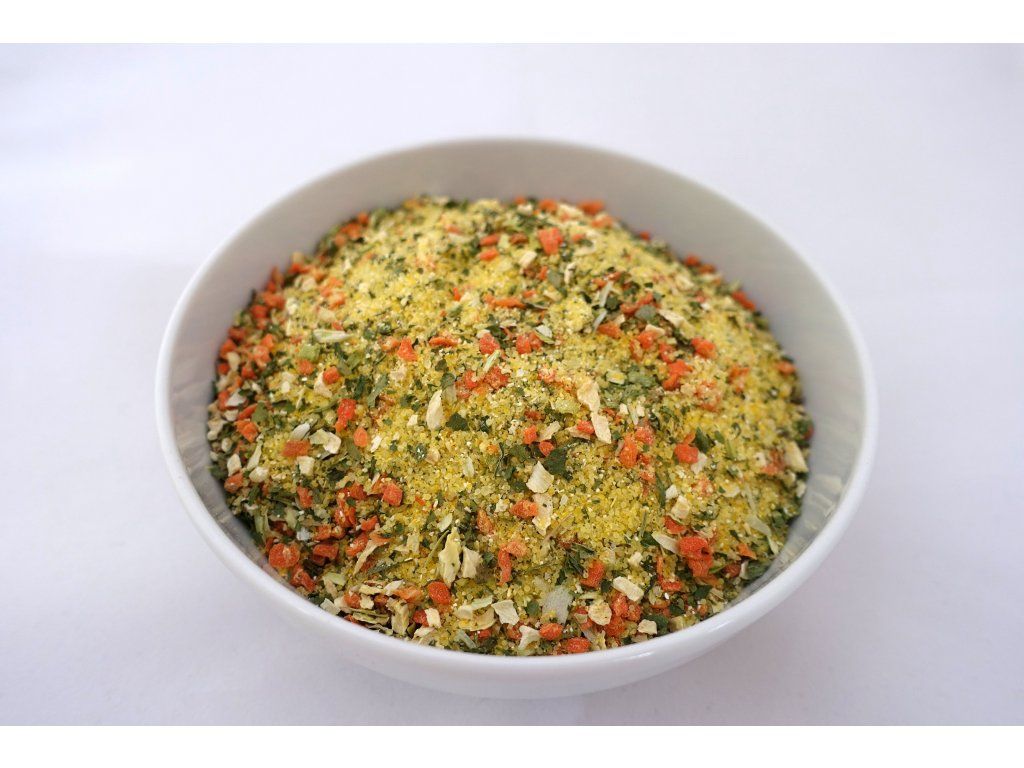 ZLOŽENIE: Jedlá soľ s jódem max. 40 %, kukuričná krupica, mrkva sušená granulovaná, látka zvýrazňující chuť a vôňu: glutamát sodný, paštrnák sušený kostka, cukor krupice, petržlenová vňať, pór sušený granulovaný, cibuľa sušená mletá, čierne korenie mleté, barvivo: riboflavin.