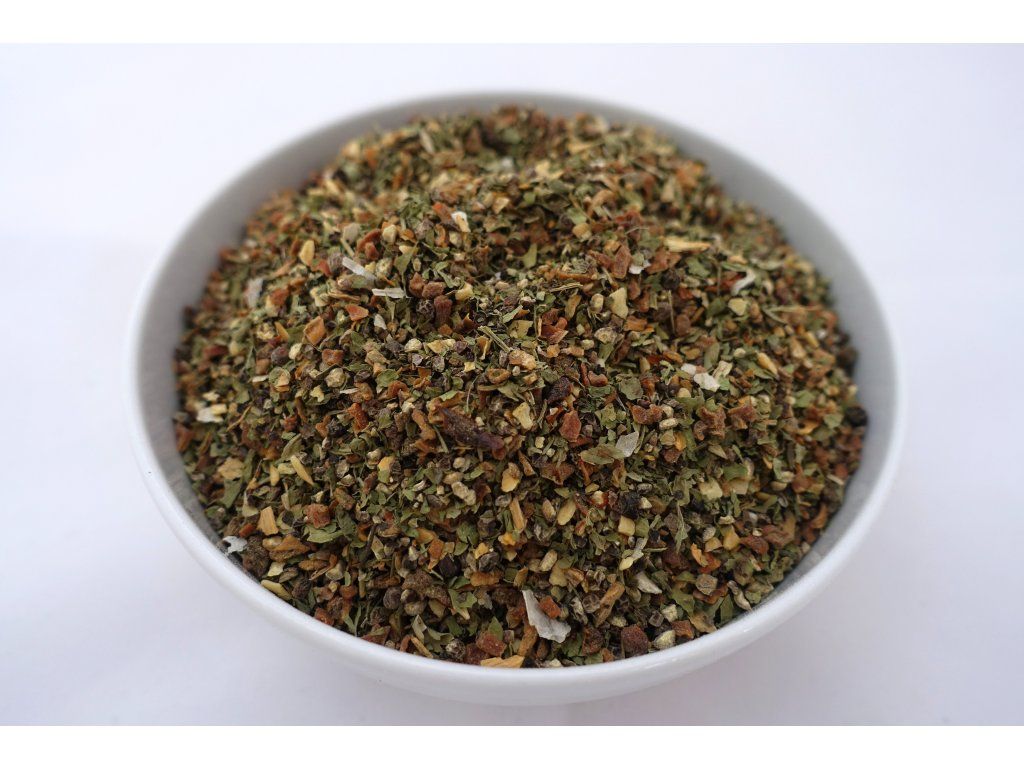 ZLOŽENIE: Korenie čierny drvený, mrkva, petržlenová vňať, cesnak, cibuľa, paprikové floky červené.