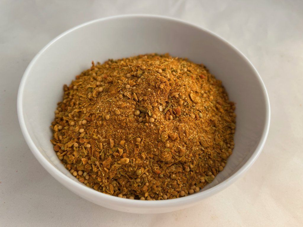 ZLOŽENIE: soľ 49 %, paprika sladká, kurkuma, HORČICA bílá, mrkva, paprikové floky červené, cibuľa, rasca, ZELER, saturejka, oregano, petržlenová vňať